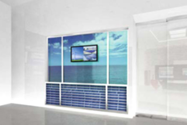 - 커튼월 시스템의 외장 유리에 태양광 발전 복층유리를 적용하여 외장재 기능과 동시에 태양광 발전이 가능하도록 한 시스템